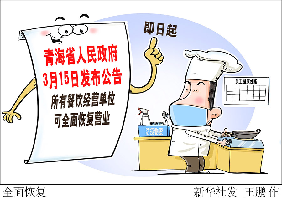 新華社西寧3月16日電(記者央秀達(dá)珍)青海省人民政府15日發(fā)布公告稱,全省所有餐飲經(jīng)營(yíng)單位(含酒店、餐館、早餐店、夜宵店等),即日起可全面恢復(fù)營(yíng)業(yè)。