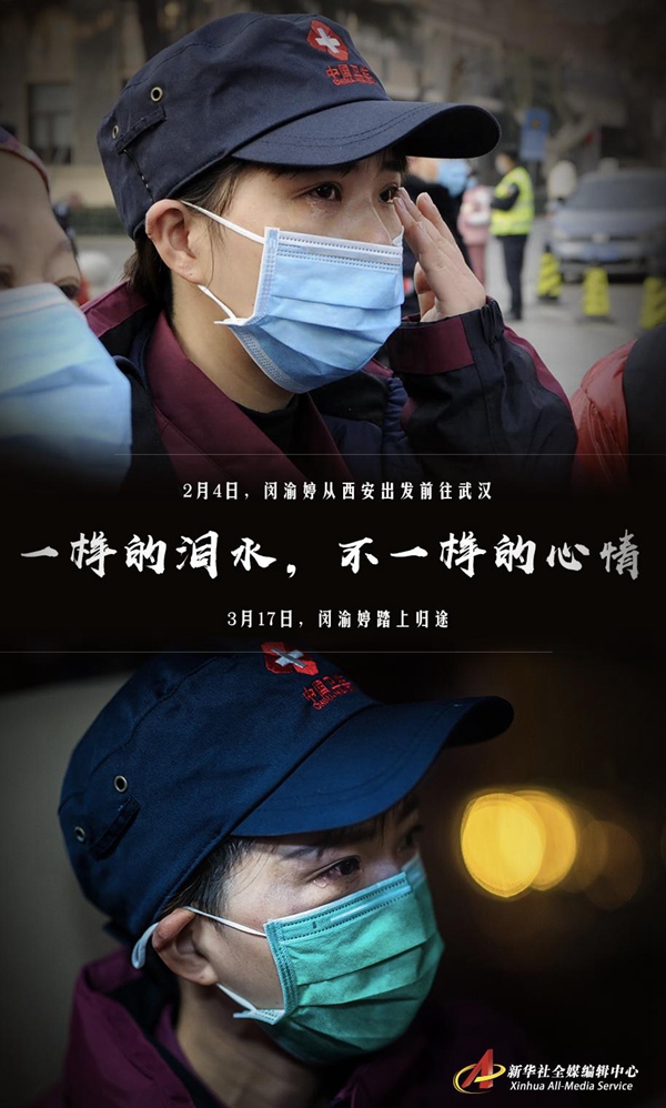 3月17日,陜西國家緊急醫(yī)學救援隊踏上返程。隊員閔渝婷忍不住落淚。