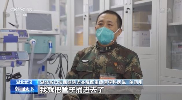 湖北省婦幼保健院光谷院區(qū)重癥醫(yī)學(xué)科醫(yī)生、危重癥患者救治突擊隊(duì)隊(duì)員 單潤(rùn)剛:我們?cè)谖鼩獾臅r(shí)候,聲門會(huì)變大,變大那一瞬間我就把管子插進(jìn)去了,也就零點(diǎn)幾秒,不到一秒鐘。