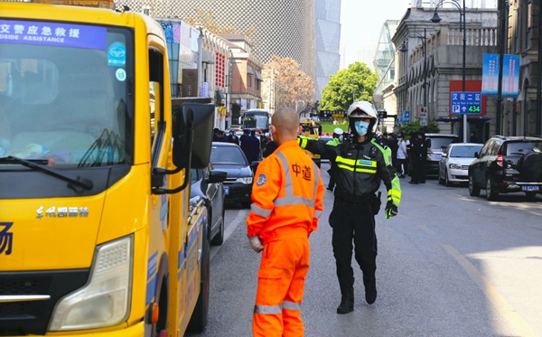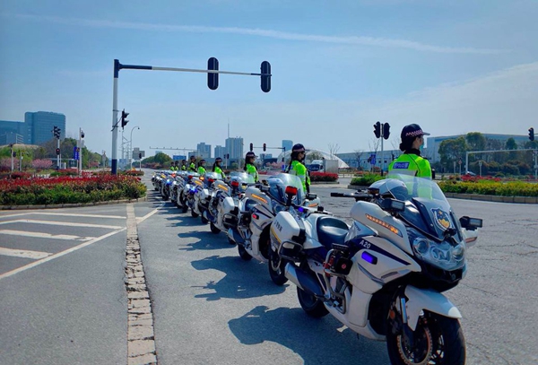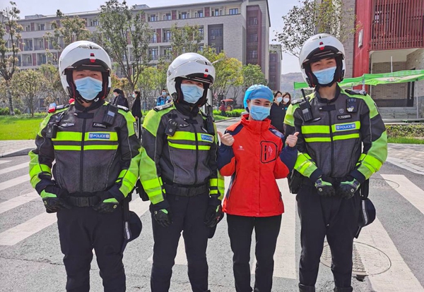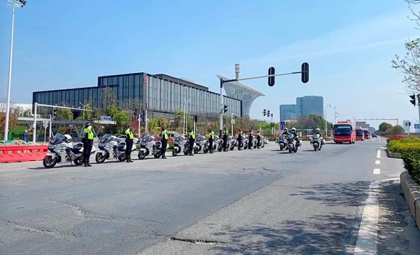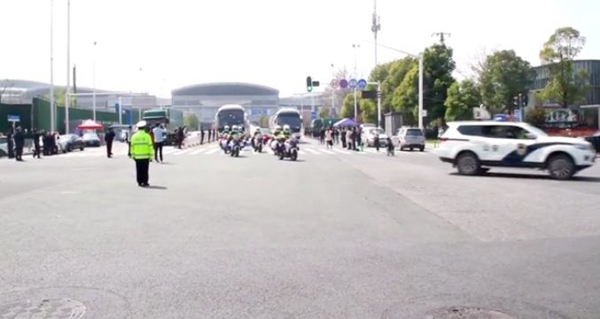 車輛沿途經(jīng)過的主要路口均有民警輔警現(xiàn)場值守