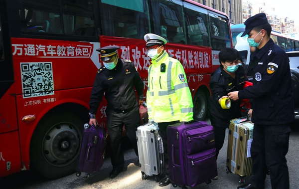 一大早,武昌區(qū)交通大隊副大隊長熊志軍帶領戰(zhàn)友趕到青海援鄂醫(yī)療隊駐地。送醫(yī)療隊到機場的有5輛大巴車,由于駐地酒店入口較小,需要提前到達現(xiàn)場,逐一清理路邊停放的車輛。