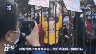 今天(18日),云南第二批支援湖北醫(yī)療隊(duì)102人從武漢駐地出發(fā)返鄉(xiāng)。駐地對面小區(qū)居民敲著鍋碗瓢盆,自制橫幅送別醫(yī)療隊(duì)隊(duì)員。