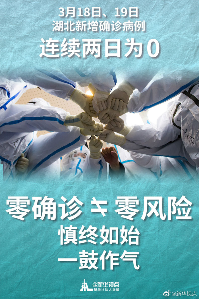 3月18日、19日,湖北連續(xù)兩日無新增確診病例,這是一個令人鼓舞的信號。 同時也要清醒看到國內(nèi)外疫情形勢的復(fù)雜性和嚴(yán)峻性。零確診不等于零風(fēng)險,防疫容不得半點(diǎn)松懈。面對出現(xiàn)的新問題、新挑戰(zhàn),因時因勢精準(zhǔn)施策,決不能讓向好形勢發(fā)生逆轉(zhuǎn)。