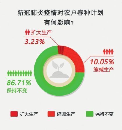 調查顯示,86.71%的農(nóng)戶表示春種計劃保持不變,只有18戶(占3.23%)農(nóng)戶表示將擴大生產(chǎn),而56戶(占10.05%)農(nóng)戶表示將縮減生產(chǎn)。(見圖3)