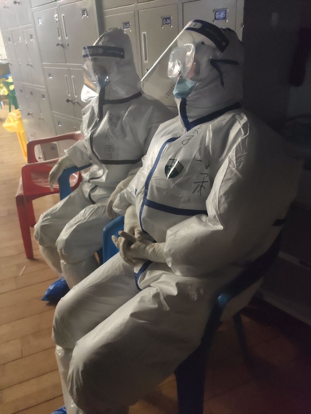 圖為貴州醫(yī)科大學(xué)附屬醫(yī)院援武漢醫(yī)療隊(duì)程小雪與同事。