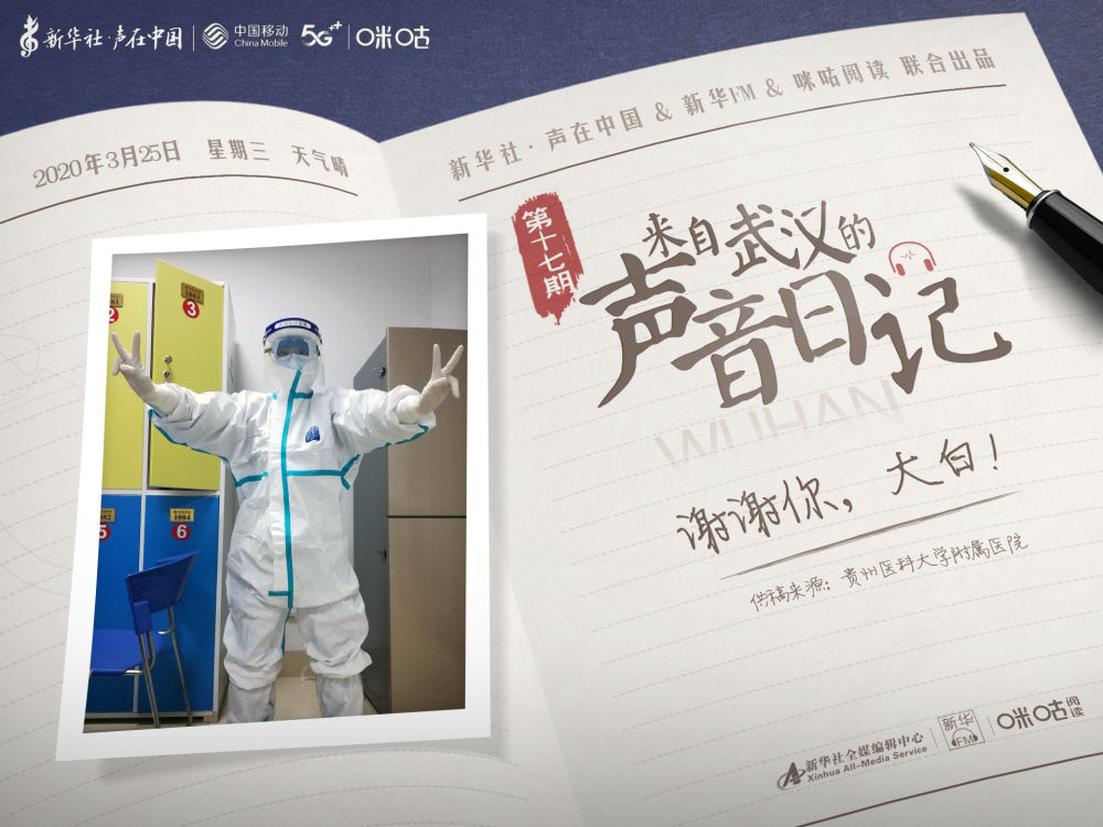 點(diǎn)擊收聽《來(lái)自武漢的聲音日記》第十七期。今天的日記來(lái)自貴州醫(yī)科大學(xué)附屬醫(yī)院援武漢醫(yī)療隊(duì)程小雪。