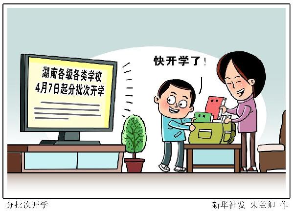 新華社長(zhǎng)沙3月28日電(記者袁汝婷)湖南省教育廳27日晚通報(bào),經(jīng)湖南省委、省政府同意,全省高三年級(jí)、初三年級(jí)于4月7日開學(xué)。之后,湖南各市州根據(jù)本地疫情情況,按照中學(xué)其他年級(jí)、小學(xué)、幼兒園的順序,明確轄區(qū)各縣市區(qū)中小學(xué)其他年級(jí)和幼兒園錯(cuò)時(shí)錯(cuò)峰開學(xué)時(shí)間。高校在其所在城市的中小學(xué)基本開學(xué)后開學(xué)。