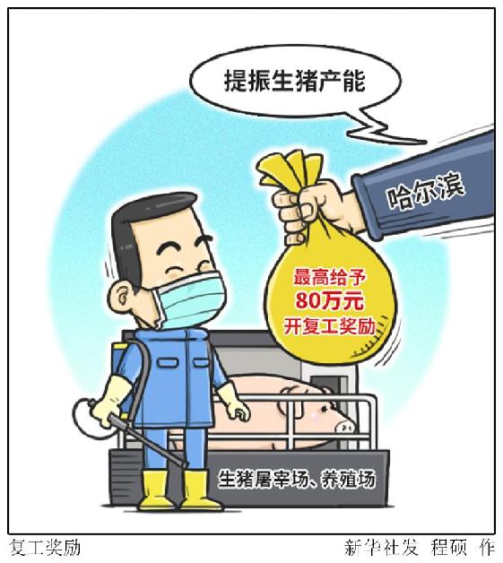 新華社哈爾濱3月28日電(記者強勇)記者從哈爾濱市政府了解到,為提振疫情影響下的生豬產能,今年哈爾濱市將完成360萬頭生豬養(yǎng)殖任務,并對日均屠宰量500頭以上的生豬定點屠宰廠給予最高80萬元一次性開復工獎勵。