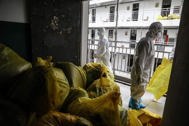 3月27日,武漢軟件工程職業(yè)學(xué)院康復(fù)驛站,工作人員正在清理隔離觀察者房間留下的物品,之后宿舍將進(jìn)行全面消殺。武軟康復(fù)驛站在2月25日投入使用,共分批接納854名康復(fù)隔離人員。新冠肺炎治愈出院患者在此實(shí)施為期14天免費(fèi)的康復(fù)隔離和醫(yī)學(xué)觀察,達(dá)到醫(yī)學(xué)標(biāo)準(zhǔn)后,才能解除隔離返家。中青報·中青網(wǎng)記者 趙迪/攝