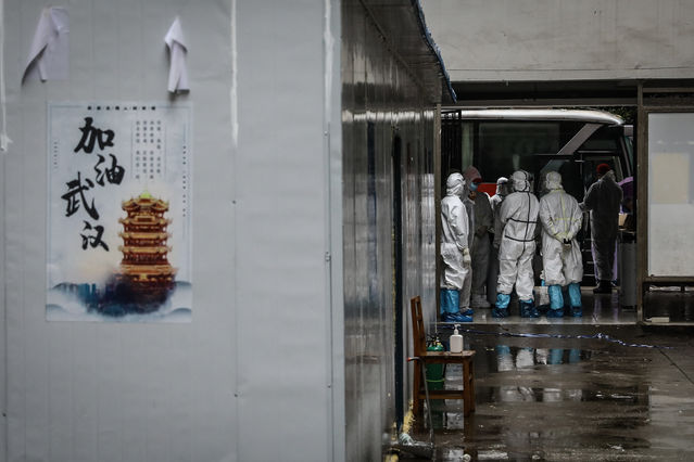 3月27日,武漢軟件工程職業(yè)學(xué)院康復(fù)驛站,等待離開的康復(fù)隔離觀察者。當(dāng)日,最后一批共102名康復(fù)隔離人員結(jié)束了隔離觀察,在雨中登上汽車離開。至此,武漢軟件工程職業(yè)學(xué)院康復(fù)驛站正式完成歷史使命,在對相關(guān)區(qū)域進(jìn)行專業(yè)消殺之后,將恢復(fù)原有功能。中青報·中青網(wǎng)記者 趙迪/攝