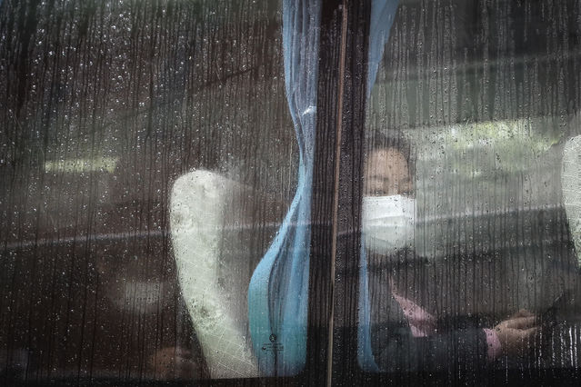3月27日,武漢軟件工程職業(yè)學(xué)院康復(fù)驛站,一名車窗旁的康復(fù)隔離觀察者。中青報·中青網(wǎng)記者 趙迪/攝