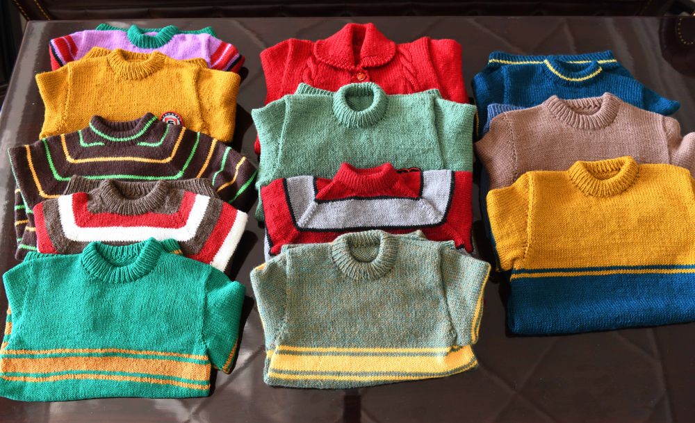 “毛衣奶奶”韓翠菊為山區(qū)孩子們織的毛衣(2月21日攝)。新華社發(fā)
