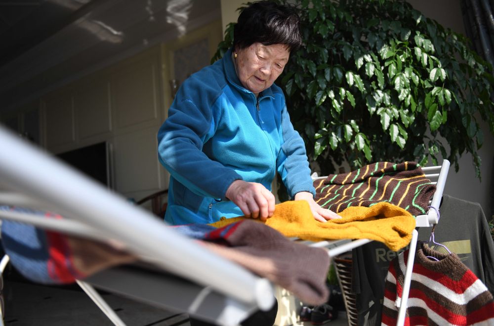 “毛衣奶奶”韓翠菊將新織的毛衣洗干凈后拿到陽(yáng)臺(tái)上晾曬,她說(shuō)一定要讓孩子們穿上的毛衣最干凈、最清爽(2月21日攝)。新華社發(fā)
