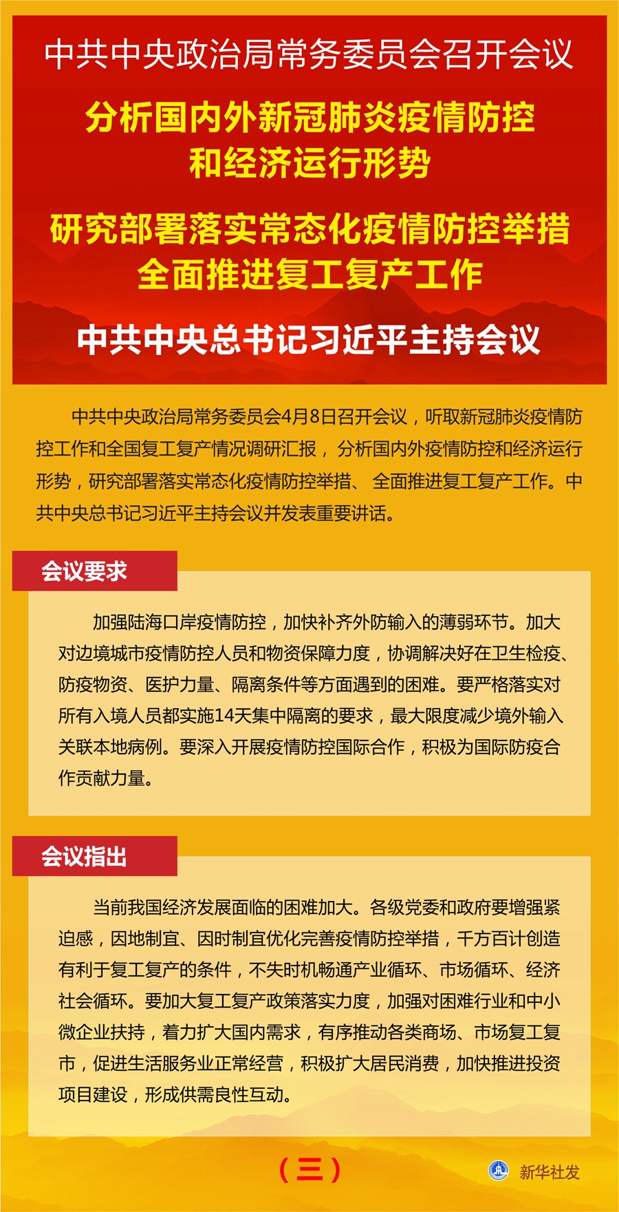 圖表:中共中央政治局常務委員會召開會議 分析國內(nèi)外新冠肺炎疫情防控和經(jīng)濟運行形勢 研究部署落實常態(tài)化疫情防控舉措全面推進復工復產(chǎn)工作 中共中央總書記習近平主持會議(三) 新華社發(fā)