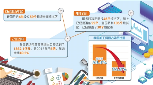 2019年,我國跨境電商零售進出口額達到了1862.1億元,是2015年的5倍,年均增速49.5%,綜試區(qū)在外貿(mào)發(fā)展中的作用也日益凸顯。