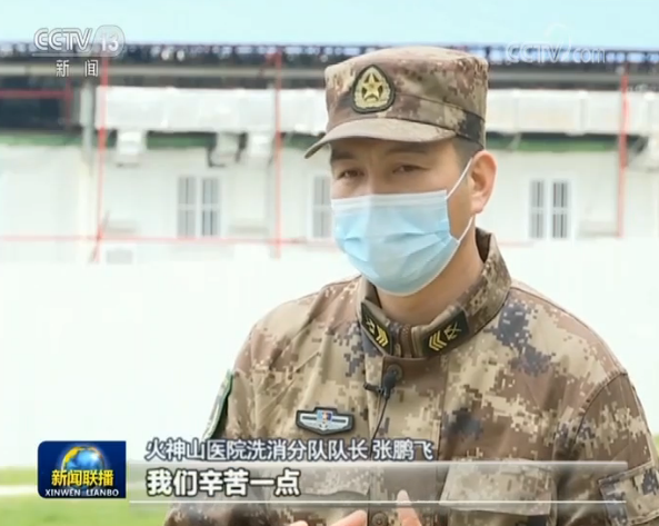 火神山醫(yī)院洗消分隊隊長 張鵬飛:我們要保證醫(yī)務(wù)人員安全,我們要保證病區(qū)安全。我們認真一點,我們負責(zé)一點,我們辛苦一點,他們就會少一絲隱患。