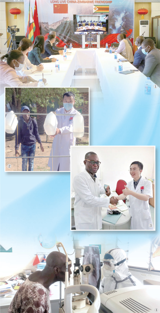 圖①:3月18日,在津巴布韋首都哈拉雷,津巴布韋衛(wèi)生部和哈拉雷當(dāng)?shù)蒯t(yī)衛(wèi)官員在中國駐津巴布韋大使館參加中非新冠肺炎疫情衛(wèi)生專家視頻會(huì)議。