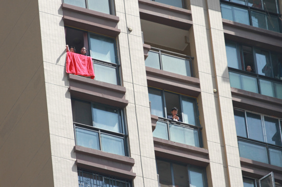 有武漢人陽臺(tái)曬出紅被子為醫(yī)療隊(duì)送行。