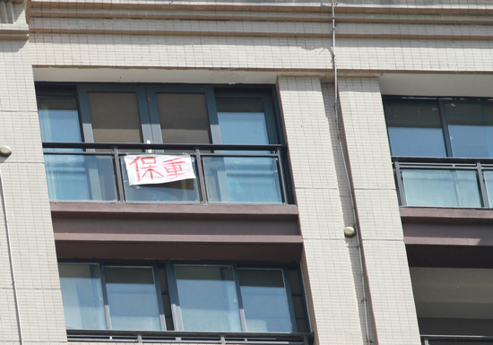 武漢市民陽臺(tái)打出標(biāo)語:保重!