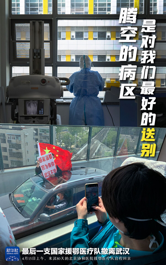 新華社武漢4月15日電 題:揮手,定格在武漢的春天——北京協(xié)和醫(yī)院支援湖北醫(yī)療隊(duì)離漢記