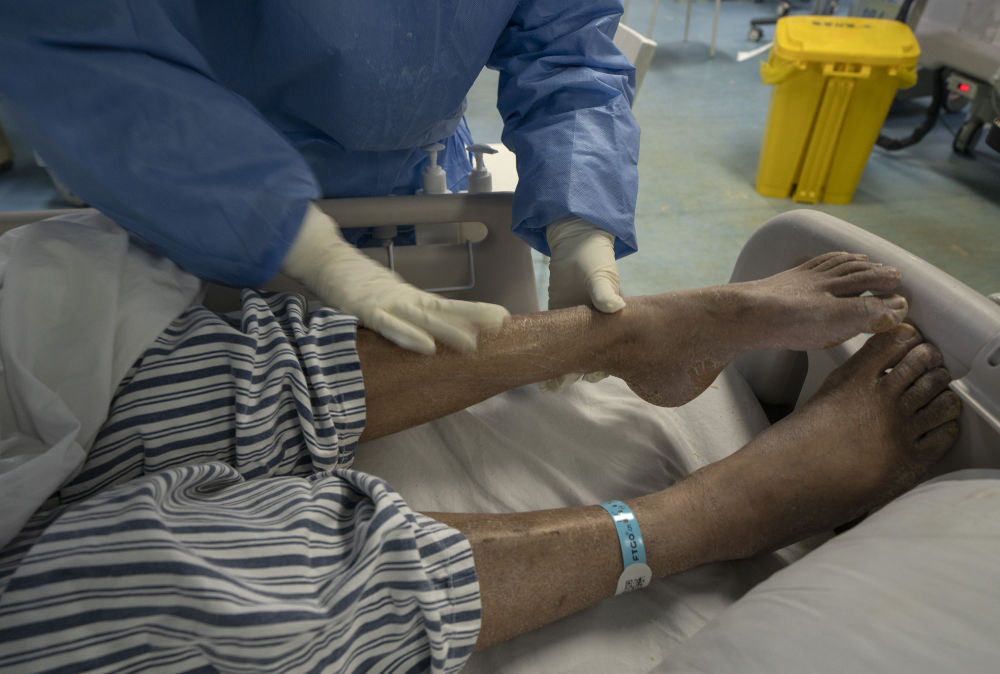 醫(yī)護(hù)人員幫他翻身時(shí)