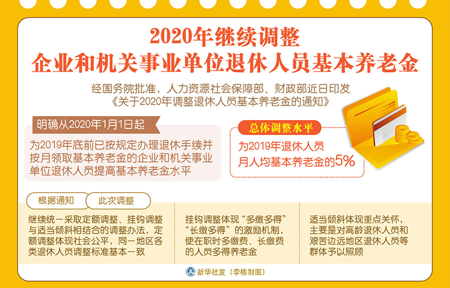新華社北京4月17日電(記者王優(yōu)玲)經(jīng)國務(wù)院批準(zhǔn),人力資源社會保障部、財政部近日印發(fā)《關(guān)于2020年調(diào)整退休人員基本養(yǎng)老金的通知》,明確從2020年1月1日起,為2019年底前已按規(guī)定辦理退休手續(xù)并按月領(lǐng)取基本養(yǎng)老金的企業(yè)和機(jī)關(guān)事業(yè)單位退休人員提高基本養(yǎng)老金水平,總體調(diào)整水平為2019年退休人員月人均基本養(yǎng)老金的5%。