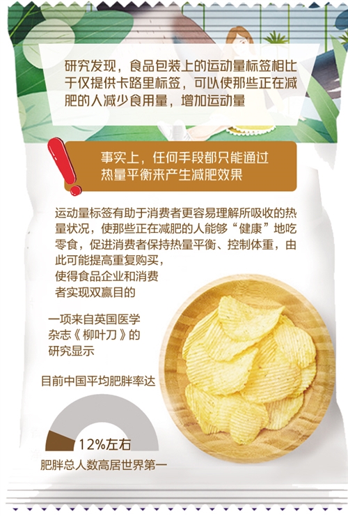 如果,當(dāng)你買了一包薯片正打算吃時(shí),卻發(fā)現(xiàn)包裝袋上寫著“該薯片120卡路里,需要快跑19分鐘才能消耗這些熱量”,那么你還會(huì)繼續(xù)吃下去嗎?