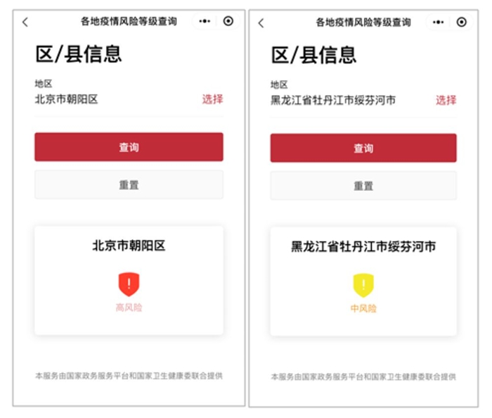 新華社北京4月21日電(記者陳奧、余蕊)近日,北京市朝陽區(qū)被列為“疫情高風(fēng)險地區(qū)”引起廣泛關(guān)注。根據(jù)最新疫情風(fēng)險變化,調(diào)整地區(qū)風(fēng)險等級,及時堵住疫情反彈漏洞,成為下一步鞏固疫情防控成果的關(guān)鍵。如何一鍵知曉個人所在區(qū)域疫情風(fēng)險等級?全國一體化政務(wù)服務(wù)平臺提供了便捷查詢?nèi)肟凇?/p>