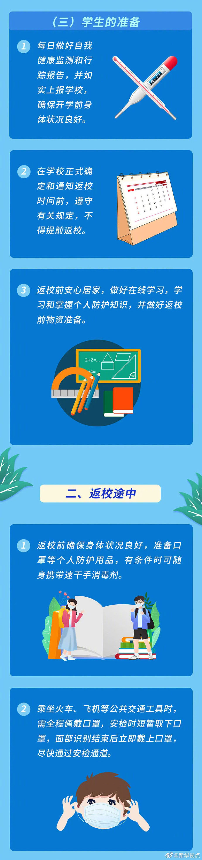 返校途中如何正確防護?開學(xué)后上課、用餐又該注意啥?周末還能出校改善伙食嗎?國家衛(wèi)健委、教育部日前聯(lián)合印發(fā)《大專院校新冠肺炎疫情防控技術(shù)方案》,馬上開學(xué)的你,快收下這份防控寶典↓(圖片來源:健康中國)(記者溫競?cè)A) ?????