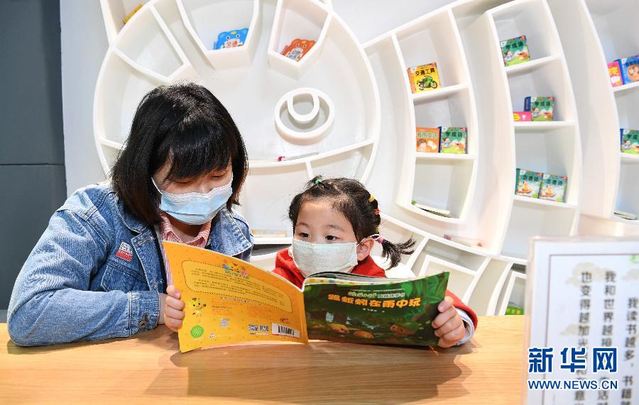 4月22日,一對(duì)母女在湖北省襄陽(yáng)市??悼h一家書(shū)店內(nèi)閱讀少兒讀物。新華社發(fā)(陳泉霖 攝)