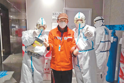 高上元(左二)和醫(yī)護(hù)人員合影。資料照片