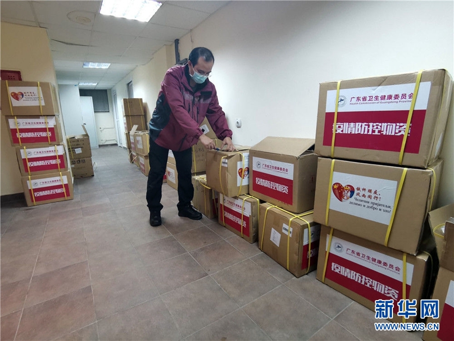 3月28日,在塞爾維亞首都貝爾格萊德的中國赴塞爾維亞抗疫醫(yī)療專家組駐地,專家組成員龍其穗整理清點(diǎn)物資,為第二天使用的防護(hù)用具做好準(zhǔn)備。這是他每晚必做的工作。新華社發(fā)(專家組供圖)