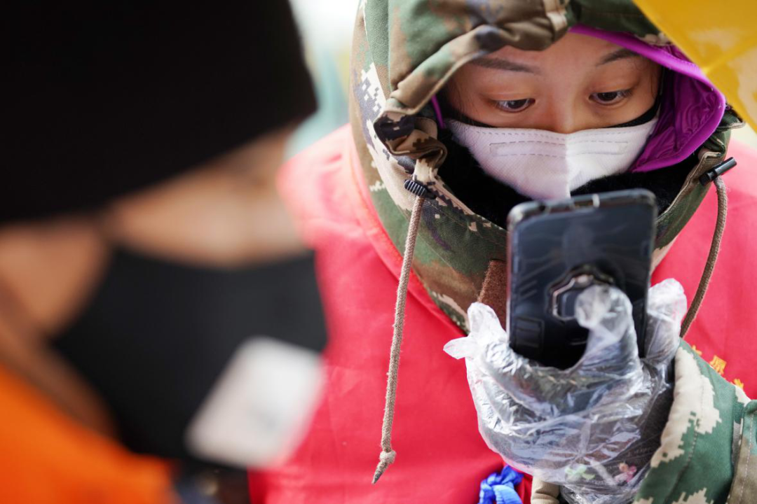 1993年出生的李文琦,是在深圳工作的哈爾濱人,春節(jié)返鄉(xiāng)回哈后成為社區(qū)志愿者。她說(shuō):“國(guó)家有難,我們‘90后’正值青年,身強(qiáng)力壯,應(yīng)該往前沖?!眻D為李文琦(右)在檢查往來(lái)車輛人員的手續(xù)證明。新華社記者 王建威/攝