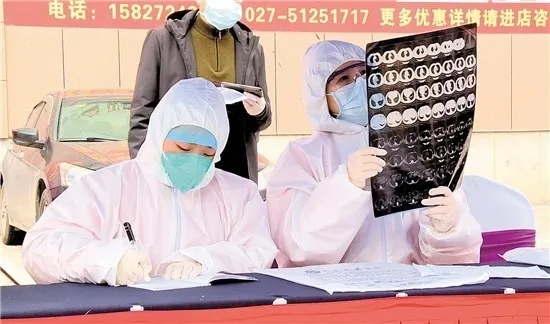 周靜(右)在社區(qū)開展病情篩查工作。湖北日?qǐng)?bào)社供圖