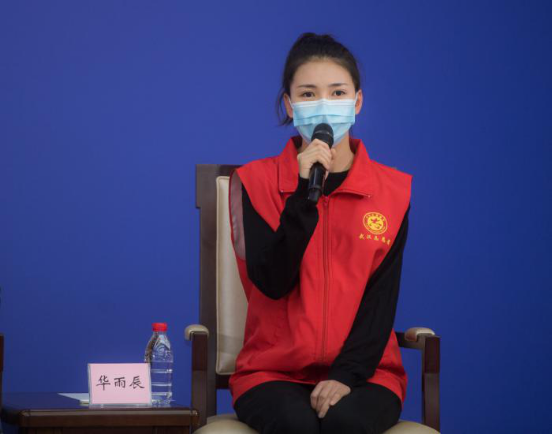 2020年2月23日,國(guó)務(wù)院新聞辦公室在湖北武漢舉行國(guó)務(wù)院新聞辦記者見面會(huì),邀請(qǐng)?jiān)谖錆h疫情防控一線的普通工作者講述他們團(tuán)結(jié)奮戰(zhàn)的故事,并回答記者提問。圖為武漢市青山區(qū)鋼花小學(xué)音樂教師華雨辰在記者會(huì)上。新華社記者 肖藝九/攝