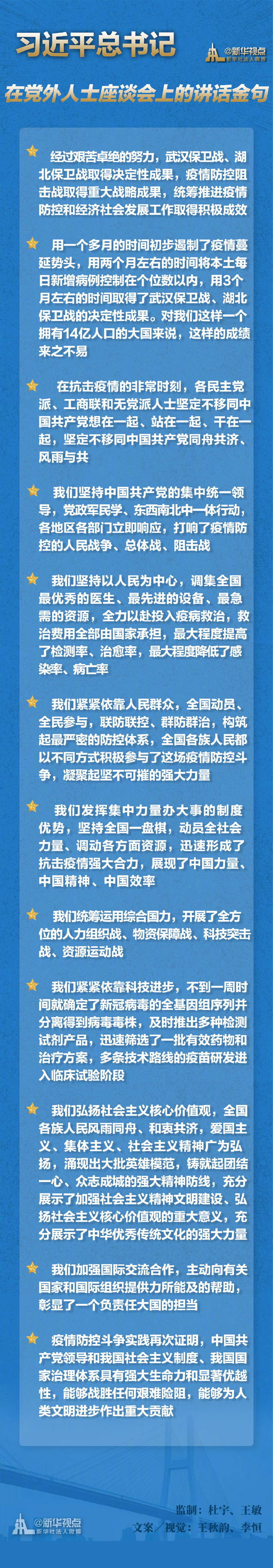 5月8日,中共中央在中南海召開黨外人士座談會(huì),就新冠肺炎疫情防控工作聽取各民主黨派中央、全國(guó)工商聯(lián)和無(wú)黨派人士代表的意見和建議。在會(huì)上,習(xí)近平總書記的重要講話鼓舞人心! ?????