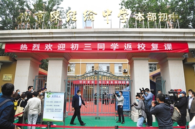 明日,北京8萬多名初三學生將正式復課。如何開展體育活動?出現(xiàn)突發(fā)事件如何進行處理?5月8日,記者對北京市朝陽區(qū)陳經綸中學本部初中進行探訪。