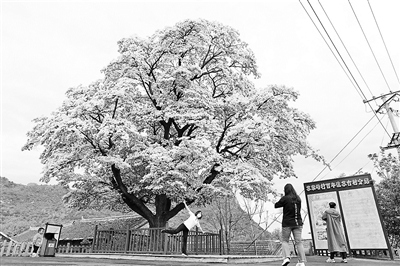流蘇花開雖美,但知名度卻不高。據(jù)密云區(qū)園林綠化局城鎮(zhèn)綠化中心工程師鄭麗紅介紹,密云區(qū)登記古樹1202株,其中一級(jí)古樹101株、二級(jí)古樹1101株,多為國槐、銀杏、松樹、柏樹。蘇家峪村流蘇古樹算不上最高壽,但在密云區(qū)卻僅此一株。北京市登記的流蘇古樹也僅有三株,除密云區(qū)外,平谷區(qū)、北京大學(xué)內(nèi)還各有一株。