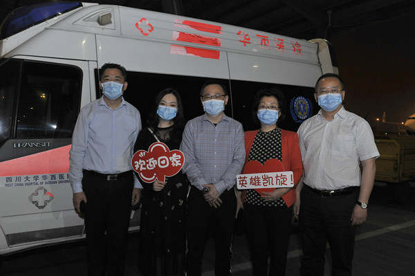 四川省衛(wèi)生健康委黨組成員、副主任宋世貴受省應對新冠肺炎疫情防控應急指揮部副指揮長、省衛(wèi)生健康委黨組書記沈驥、省應對新冠肺炎疫情防控應急指揮部副指揮長、省衛(wèi)生健康委主任何延政的委托,與四川大學華西醫(yī)院副院長劉倫旭率領相關人員到機場迎接。宋世貴表示,四川堅決貫徹落實黨中央部署,堅持全國一盤棋,一方有難,八方支援,選派優(yōu)秀的專家進行戰(zhàn)疫馳援。這次大災來了之后,康焰剛從武漢戰(zhàn)斗回到四川不到3天,又受國務院應對新型冠狀病毒肺炎疫情聯(lián)防聯(lián)控機制醫(yī)療救治組委派,轉戰(zhàn)綏芬河、牡丹江,一直在前方堅持戰(zhàn)疫,工作很出色,是全省衛(wèi)生健康系統(tǒng)的優(yōu)秀代表,也得到了國家衛(wèi)健委的充分肯定。