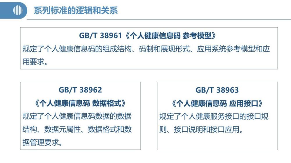 據(jù)了解,健康碼“國(guó)標(biāo)”由《參考模型》《數(shù)據(jù)格式》和《應(yīng)用接口》三項(xiàng)標(biāo)準(zhǔn)構(gòu)成??傮w上來(lái)看,《參考模型》是框架性標(biāo)準(zhǔn),重在提出“健康碼”應(yīng)用系統(tǒng)和系統(tǒng)間互認(rèn)的技術(shù)模型;《數(shù)據(jù)格式》規(guī)范了個(gè)人健康信息數(shù)據(jù),重點(diǎn)在數(shù)據(jù)“原料”層面下功夫;《應(yīng)用接口》則可看作是框架模型下實(shí)現(xiàn)系統(tǒng)對(duì)接互認(rèn)的操作指導(dǎo)手冊(cè)。三項(xiàng)標(biāo)準(zhǔn)互為支撐和補(bǔ)充,共同適用于指導(dǎo)“健康碼”系統(tǒng)的設(shè)計(jì)、開(kāi)發(fā)和系統(tǒng)集成。