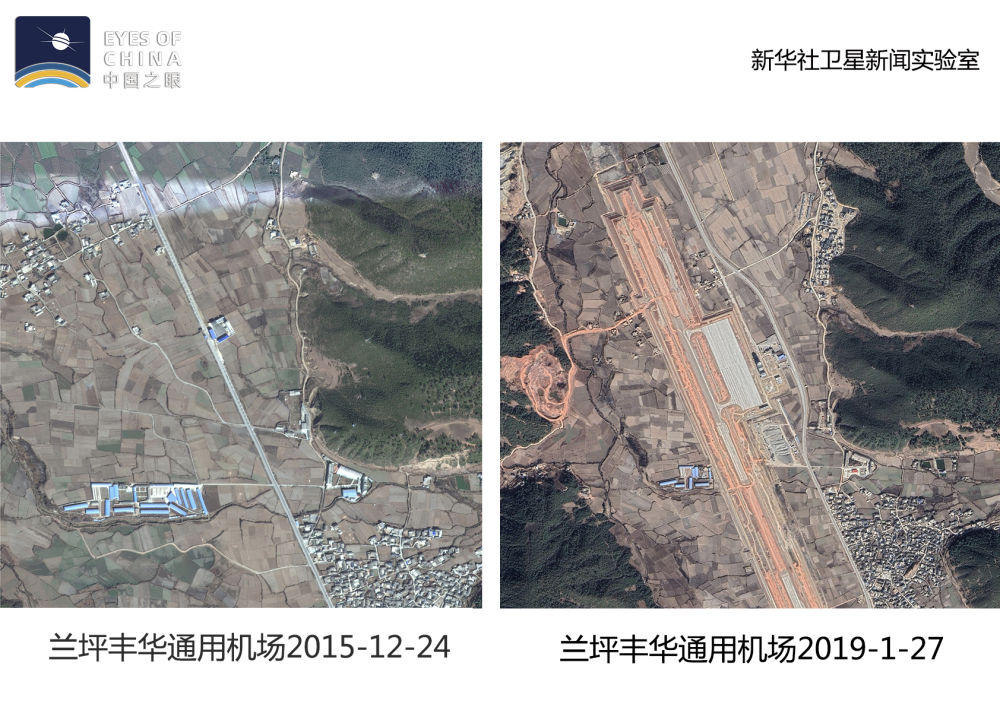 ↑衛(wèi)星記錄了蘭坪豐華通用機場從無到有的建設過程。