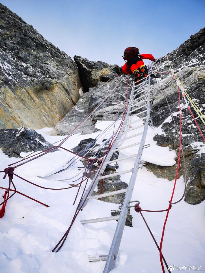 2020珠峰高程測量登山隊隊員已跨過第二臺階,準備攀登第三臺階,進行沖頂
