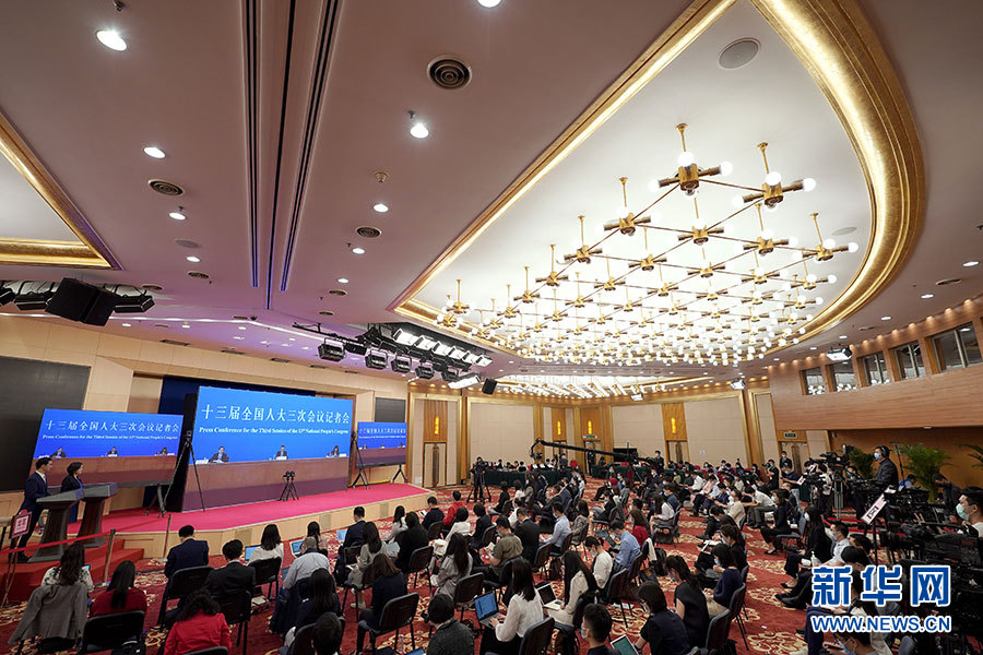 5月28日下午,十三屆全國人大三次會議在北京人民大會堂舉行記者會,國務(wù)院總理李克強(qiáng)應(yīng)大會發(fā)言人張業(yè)遂的邀請出席記者會,并回答中外記者提問。這是記者在梅地亞中心多功能廳采訪。 新華社記者 金良快 攝
