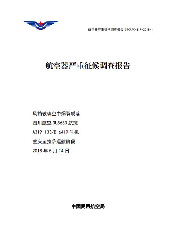 6月2日,中國民用航空安全信息系統(tǒng)發(fā)布2018年5月14日川航A319-100/B-6419號機執(zhí)行3U8633重慶至拉薩航班風(fēng)擋玻璃空中爆裂脫落事件的調(diào)查報告。