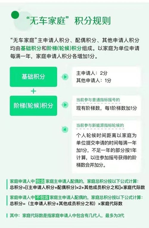 如果家庭成員中有多名成員符合作為家庭主申請人的條件,是可以組合成多個(gè)“無車家庭”來申請指標(biāo)的。不過,作為一個(gè)家庭來申請時(shí),家庭申請人越多,家庭總積分就越高,獲得指標(biāo)的概率也更高。