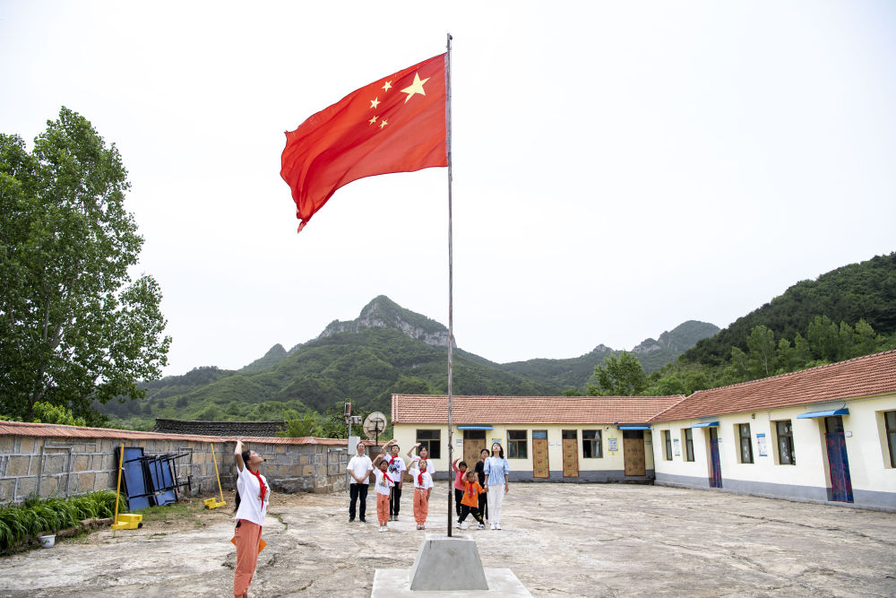隨著幾位家住大山深處的同學(xué)陸續(xù)趕來,馬武寨寄宿制小學(xué)的全體師生舉行了疫情發(fā)生以來的首次升國旗儀式。