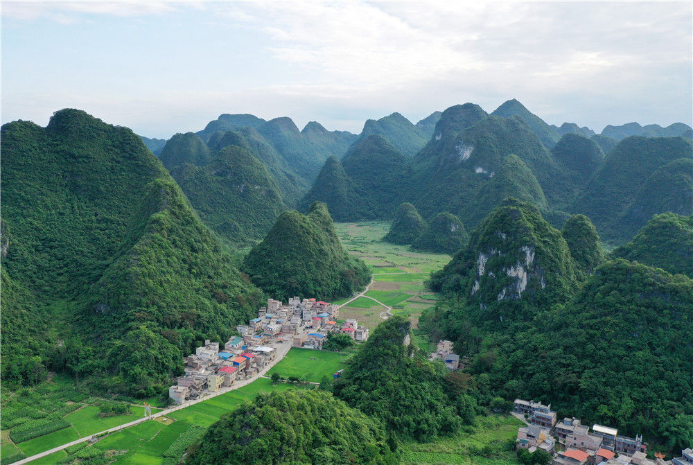 這是廣西環(huán)江毛南族自治縣下南鄉(xiāng)鄉(xiāng)村風貌(5月22日攝,無人機照片)。新華社記者 陸波岸 攝