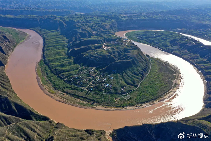 這是2019年8月28日拍攝的山西省永和縣閣底鄉(xiāng)境內(nèi)黃河乾坤灣(無人機照片)。新華社記者 曹陽 攝