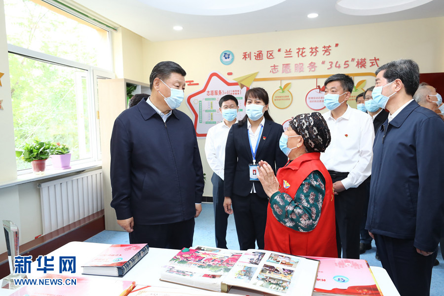 6月8日至10日,中共中央總書記、國家主席、中央軍委主席習(xí)近平在寧夏考察。這是6月8日下午,習(xí)近平在吳忠市利通區(qū)金花園社區(qū)黨群活動(dòng)服務(wù)中心,同社區(qū)志愿者代表親切交談。 新華社記者 鞠鵬 攝