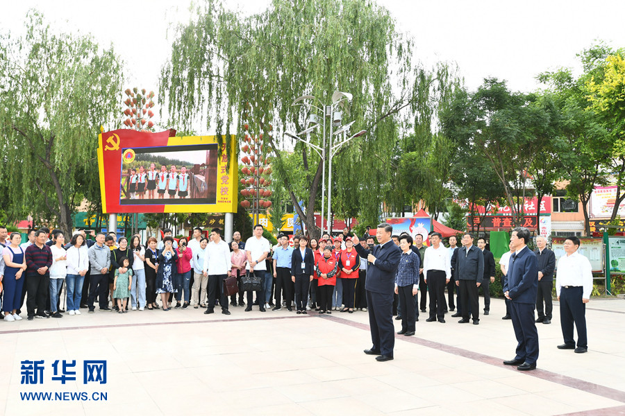 6月8日至10日,中共中央總書記、國家主席、中央軍委主席習(xí)近平在寧夏考察。這是6月8日下午,習(xí)近平在吳忠市利通區(qū)金花園社區(qū)廣場(chǎng),同居民們親切交流。 新華社記者 燕雁 攝